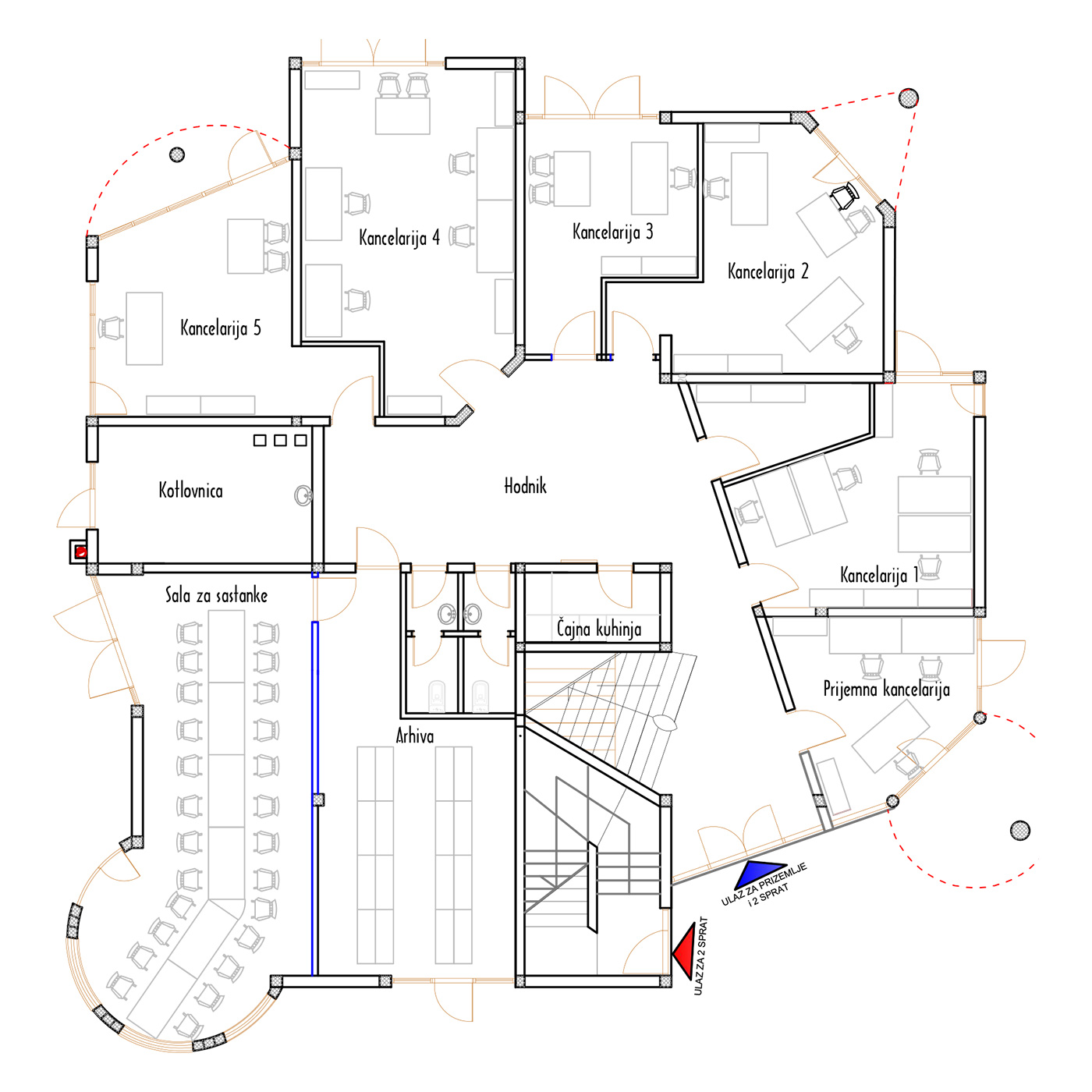 Sastoji se od dva zasebna ulaza. Na jednom od ulazu nalazi se atraktivan poslovni prostor, ukupne korisne površine 594,04m2 (Prizemlje 293,66m2 + Prvi sprat 300,38m2)