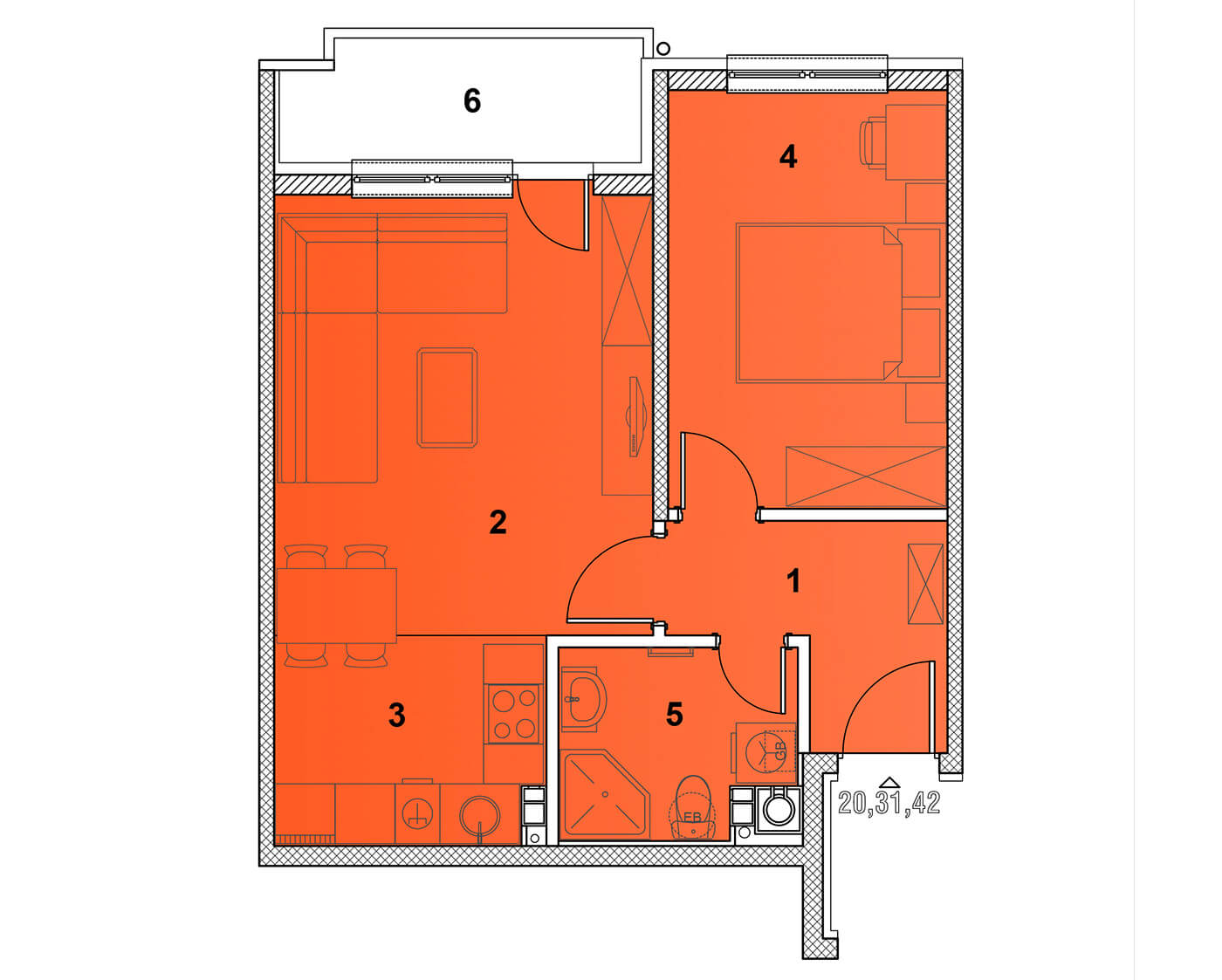 1 | Hodnik | 6,69 | 1,00 | 6,69 |